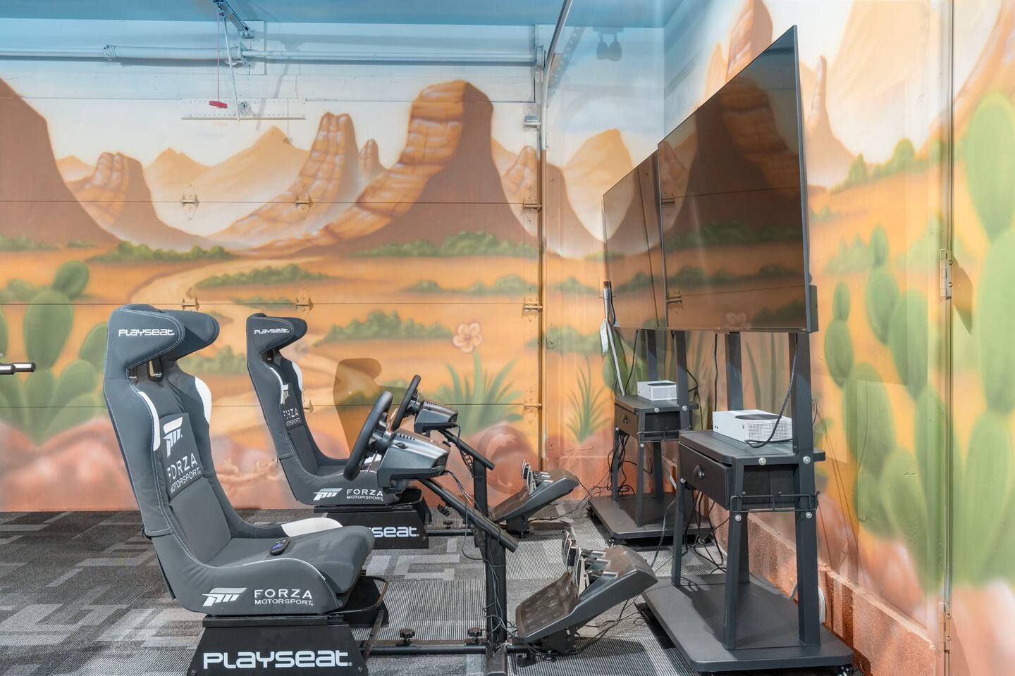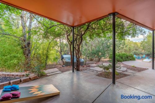 Welcome to Bella Vista, your tranquil desert oasis! Enjoy incredible panoramic views of Thunder Mountain and direct access to amazing trails in the heart of West Sedona. There's also a one-of-a-kind desert-themed game room with sim racing video game setup, pool table, shuffleboard, foosball, and board games! Relax in the massage chair or enjoy the outdoors in the sparkling pool and spa, outdoor patio & pergola, or while sharing a meal on the deck and soaking up the red rock views!